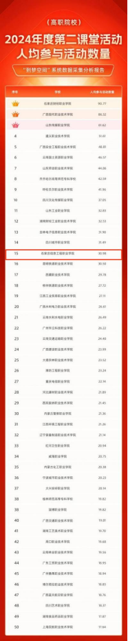 近日,在团中央发布的“第二课堂成绩单”工作年度评价榜单中,我院入选第二课堂活动人均参与活动数量、第二课堂活动评价平均分两个50强排行榜。