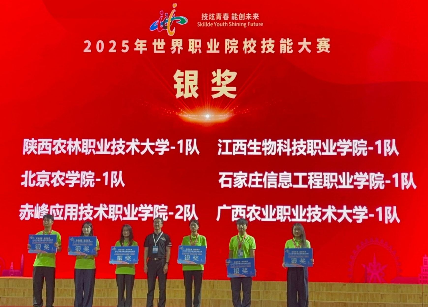 8月28日,2025年世界职业院校技能大赛现代农业赛道赛场传来喜讯,由我院农林牧医系2023级现代农业技术专业学生李亚杰、赵嘉蔓,2024级现代农业技术专业学生吕雨轩、谢海森组成的参赛团队凭借扎实的专业技能和出色的团队协作,在百余支参赛队伍中脱颖而出,荣获银奖。