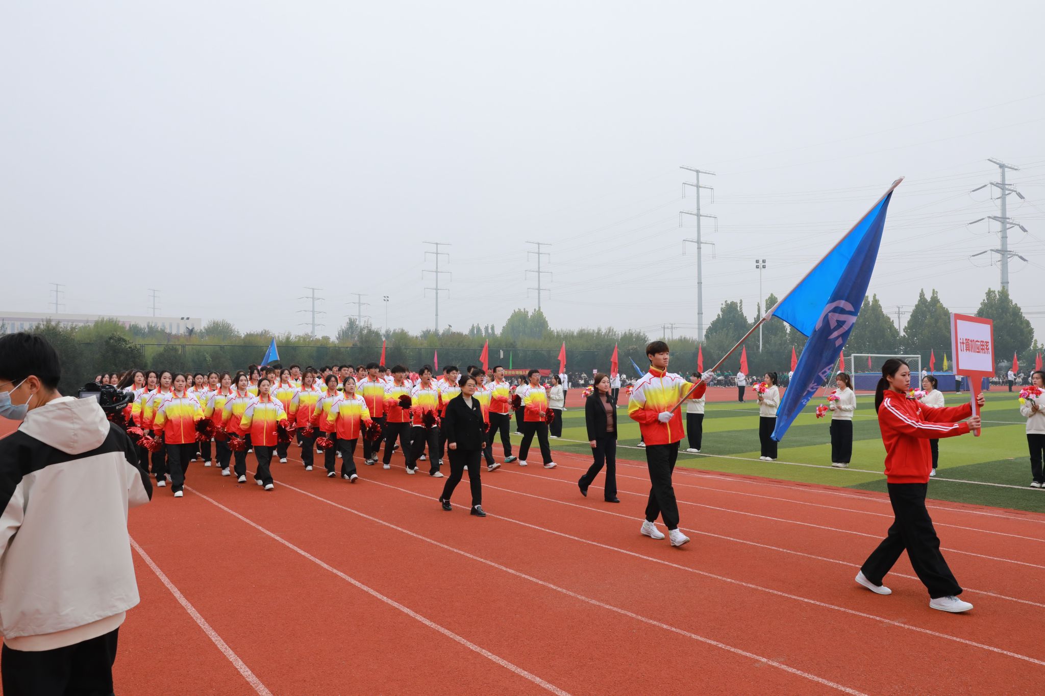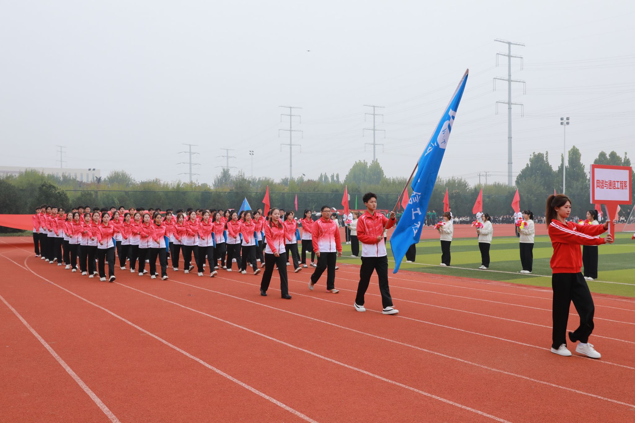 大会初始,国旗队、校旗队、花束队、旗林队、裁判员代表队及各系代表队相继入场。各代表队步伐矫健、气势如虹,尽显信工人艰苦创业、勤勉敬业、求是创新、大气包容、敢为人先的精神。