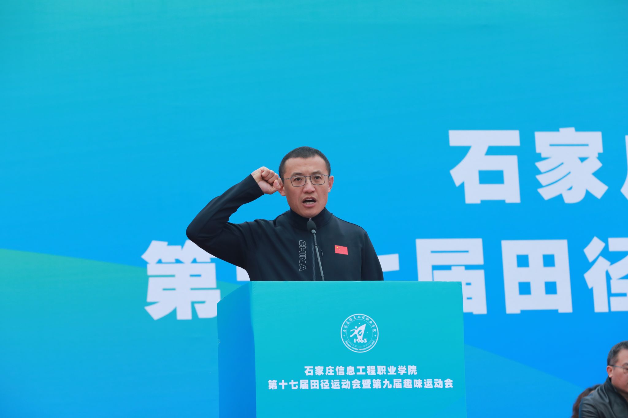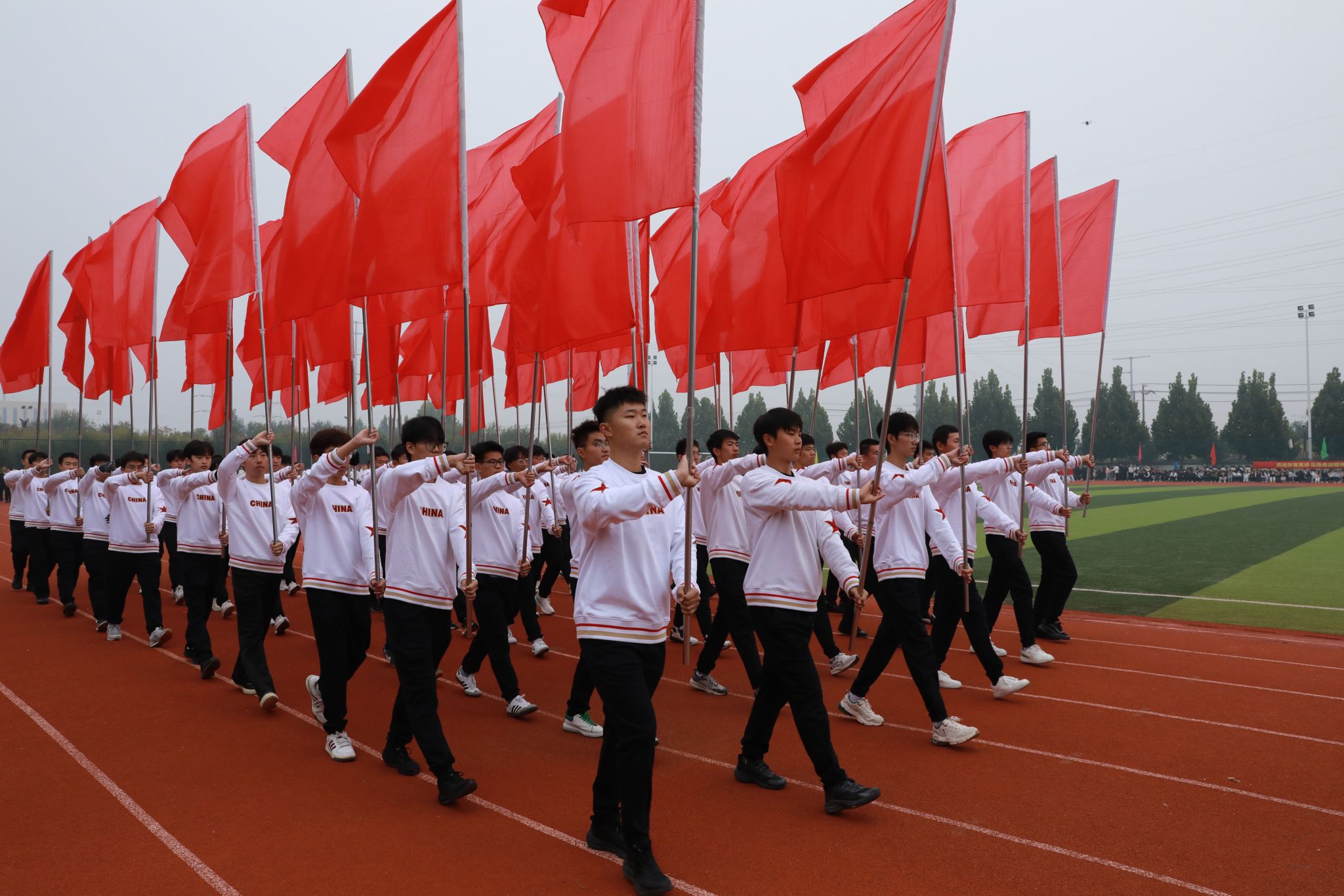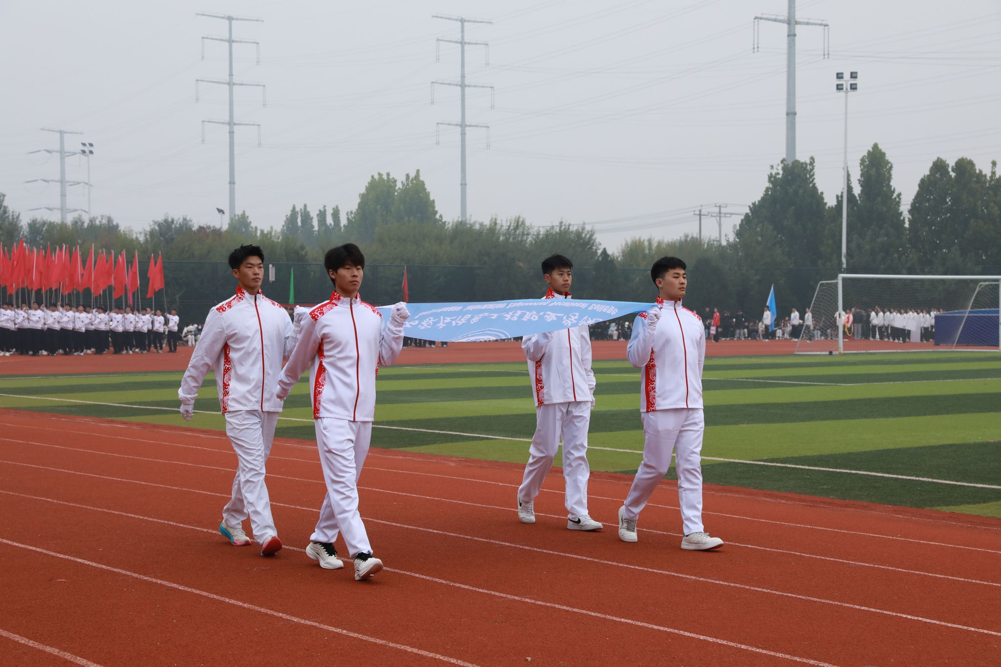 礼毕,马福恒表示,霜降时节,寒意渐浓,但同学们热情高涨、意气风发,全体教职员工激情澎湃、昂扬向上。他代表学校向筹备大赛的全体工作人员表示诚挚的谢意,向刻苦训练、积极备战的全体运动员致以亲切的问候。同时,希望大家要强化安全意识,坚持健康至上,在健康安全中享受运动乐趣、突破自我极限;要恪守公平准则,用尊重铸就赛场,共同守护体育的纯净与荣光;要弘扬团队荣耀,以协作谱写辉煌,用团队默契书写好“集体至上”的生动教材。