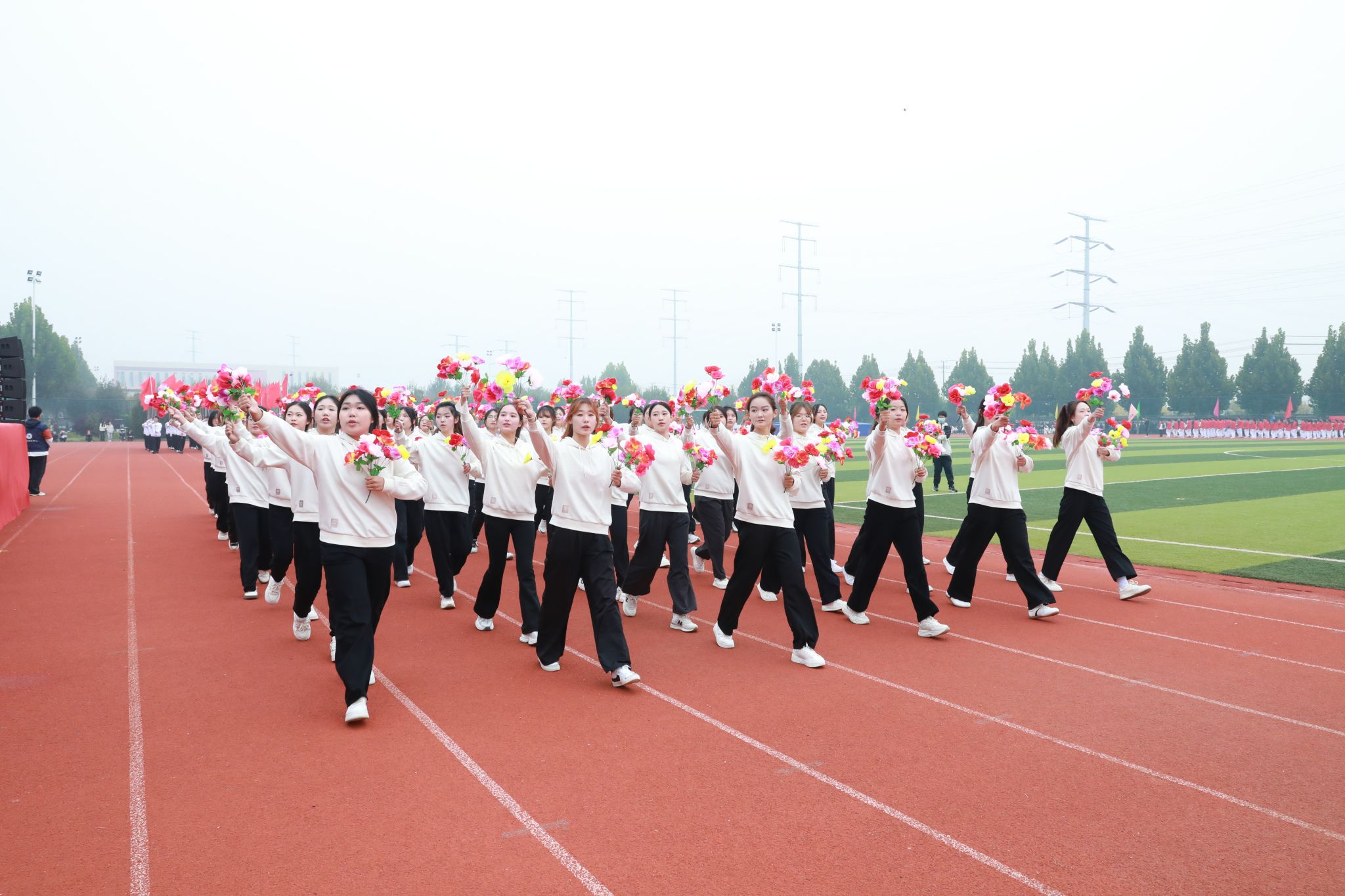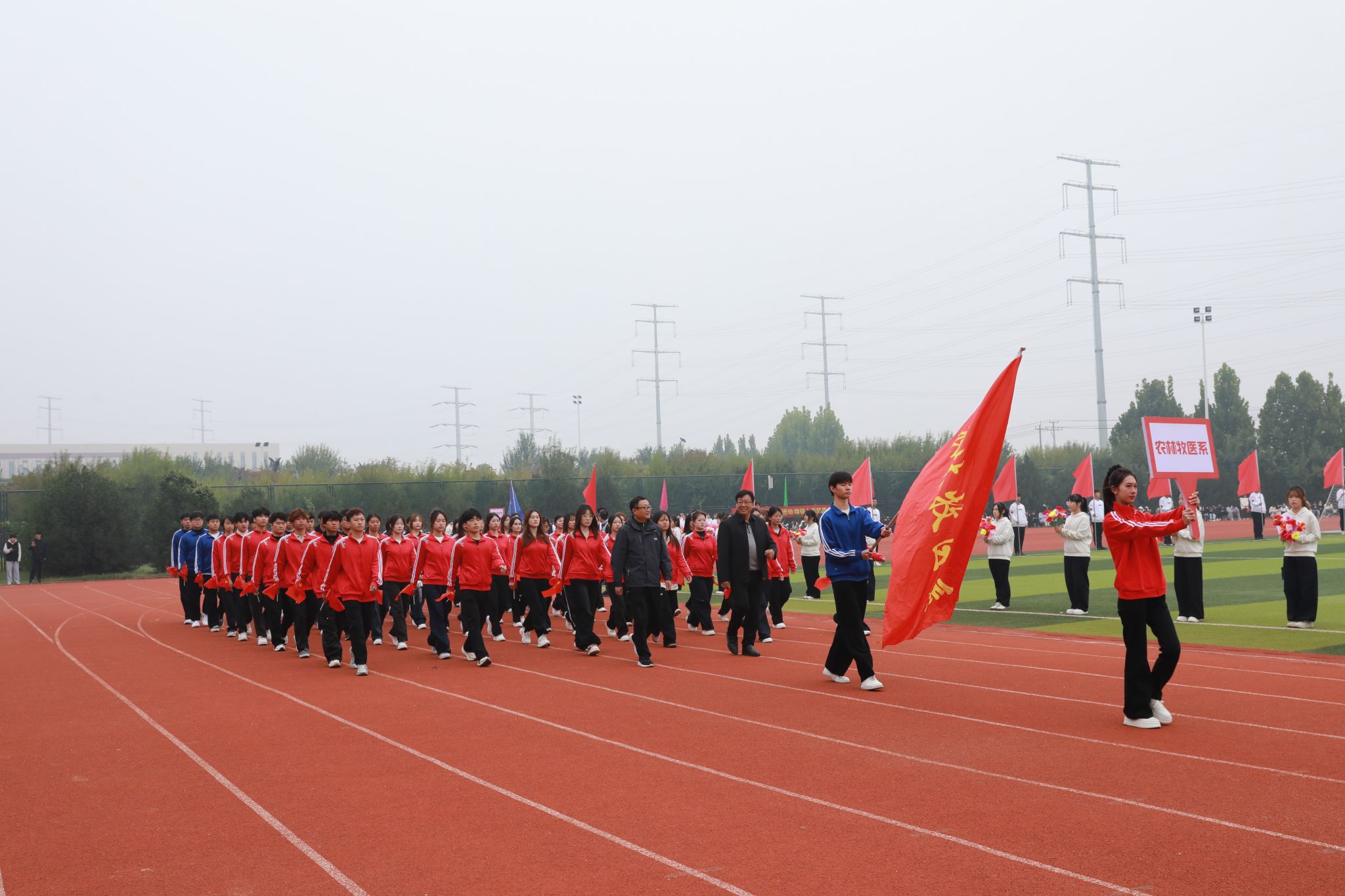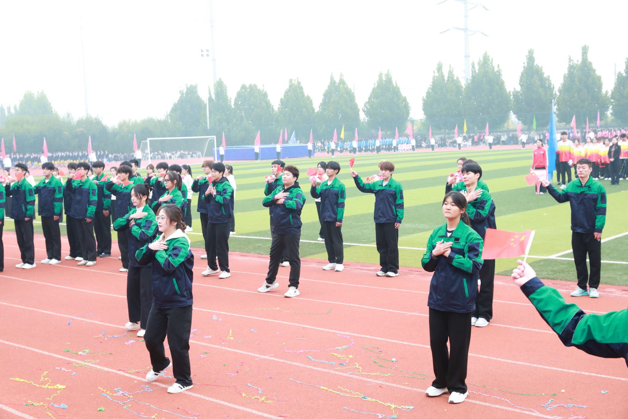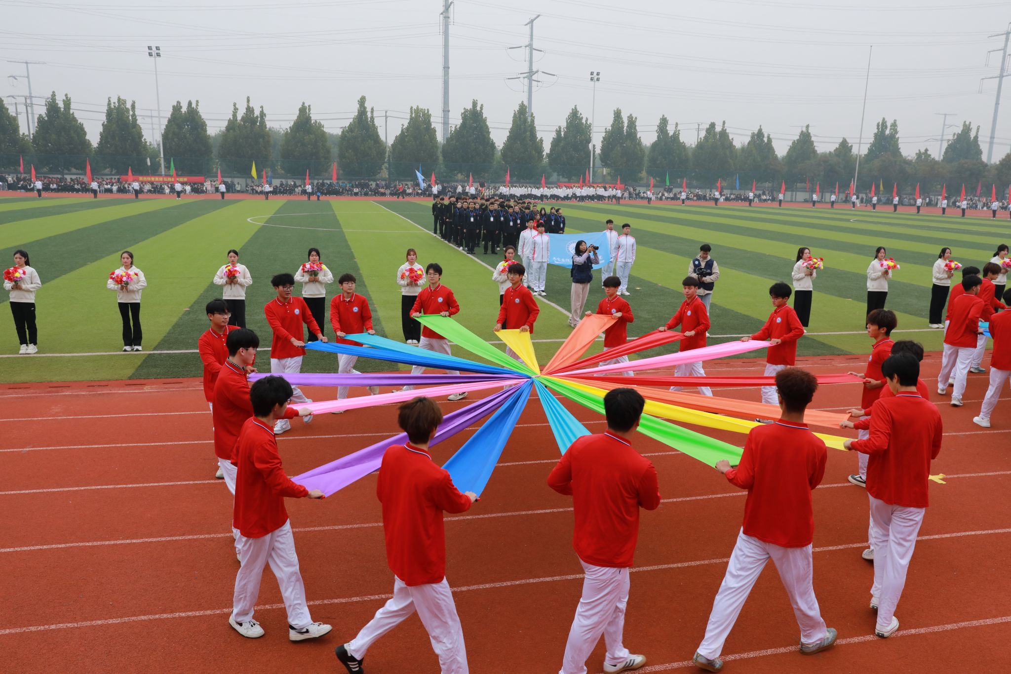 礼毕,马福恒表示,霜降时节,寒意渐浓,但同学们热情高涨、意气风发,全体教职员工激情澎湃、昂扬向上。他代表学校向筹备大赛的全体工作人员表示诚挚的谢意,向刻苦训练、积极备战的全体运动员致以亲切的问候。同时,希望大家要强化安全意识,坚持健康至上,在健康安全中享受运动乐趣、突破自我极限;要恪守公平准则,用尊重铸就赛场,共同守护体育的纯净与荣光;要弘扬团队荣耀,以协作谱写辉煌,用团队默契书写好“集体至上”的生动教材。