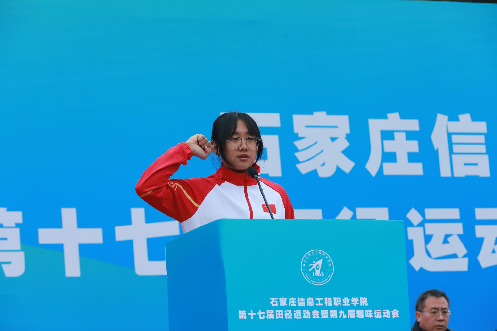 体育部吴俊杰老师与2025级农林牧医系李叶同学,分别作为裁判员代表和运动员代表宣誓。