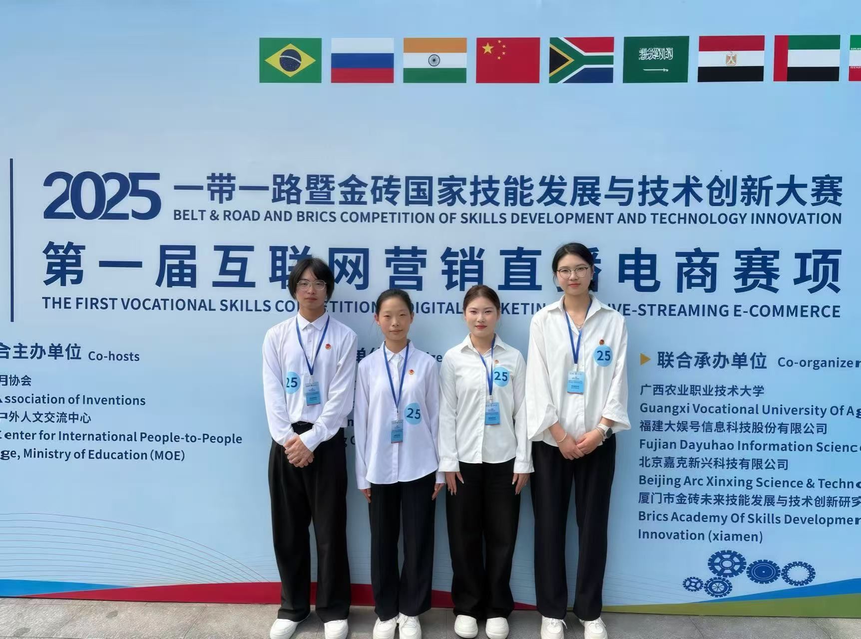 10月25日,2025一带一路暨金砖国家技能发展与技术创新大赛首届互联网营销直播电商赛项(高职组)全国总决赛在广西农业职业技术大学顺利闭幕。我院经济贸易系电子商务专业参赛团队发挥出色,荣获全国三等奖。