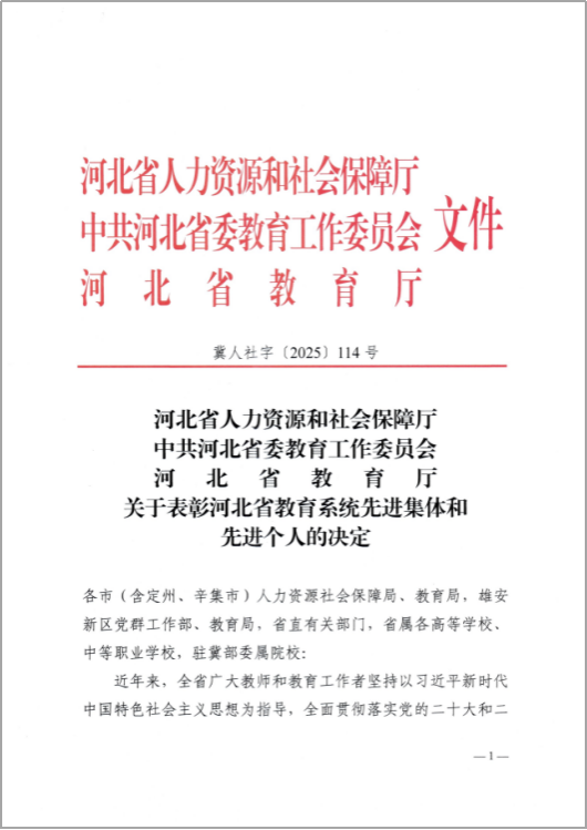 传媒报佳讯,喜报展风采。近日,由河北省人力资源和社会保障厅、中共河北省委教育工作委员会、河北省教育厅联合发文表彰,我院传媒艺术系高质量党建、教育教学改革、人才培养、学科建设及社会服务等突出表现,荣获“河北省教育系统先进集体”称号。