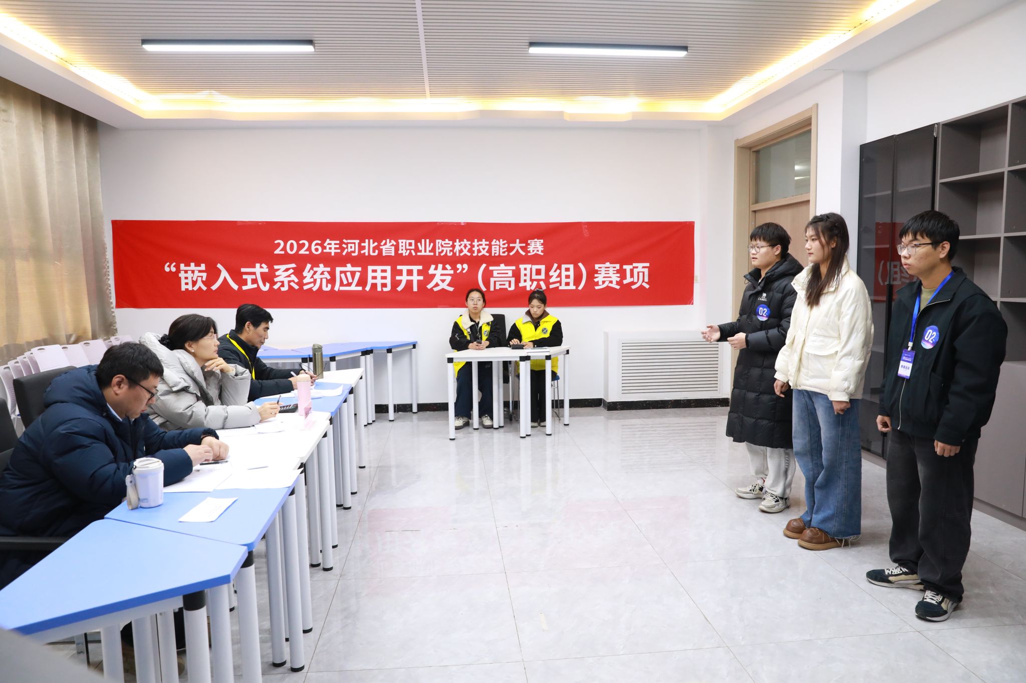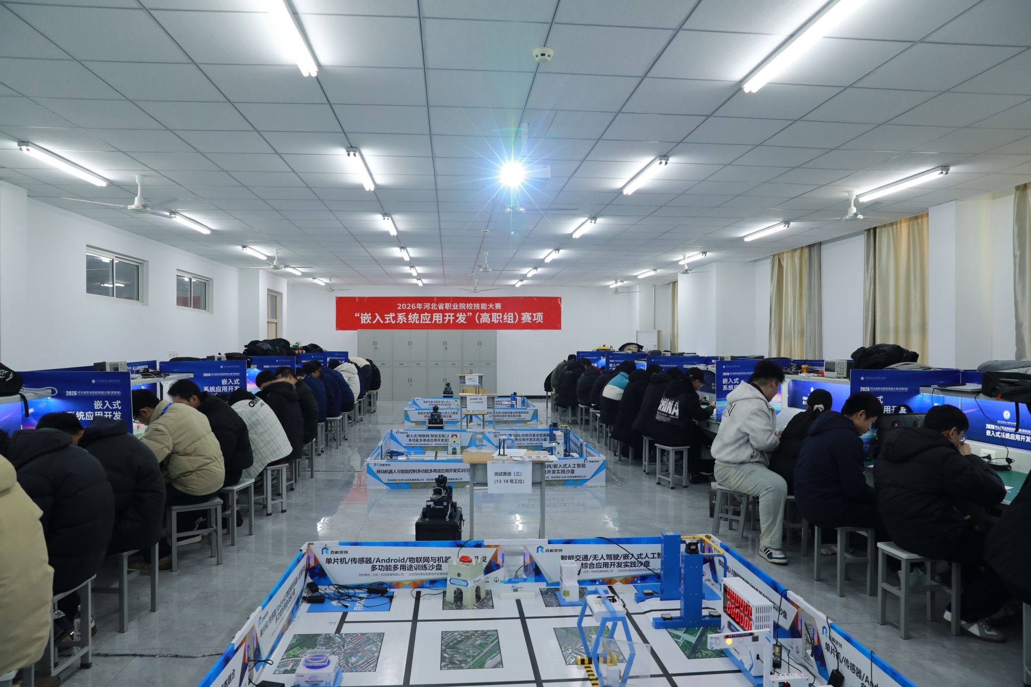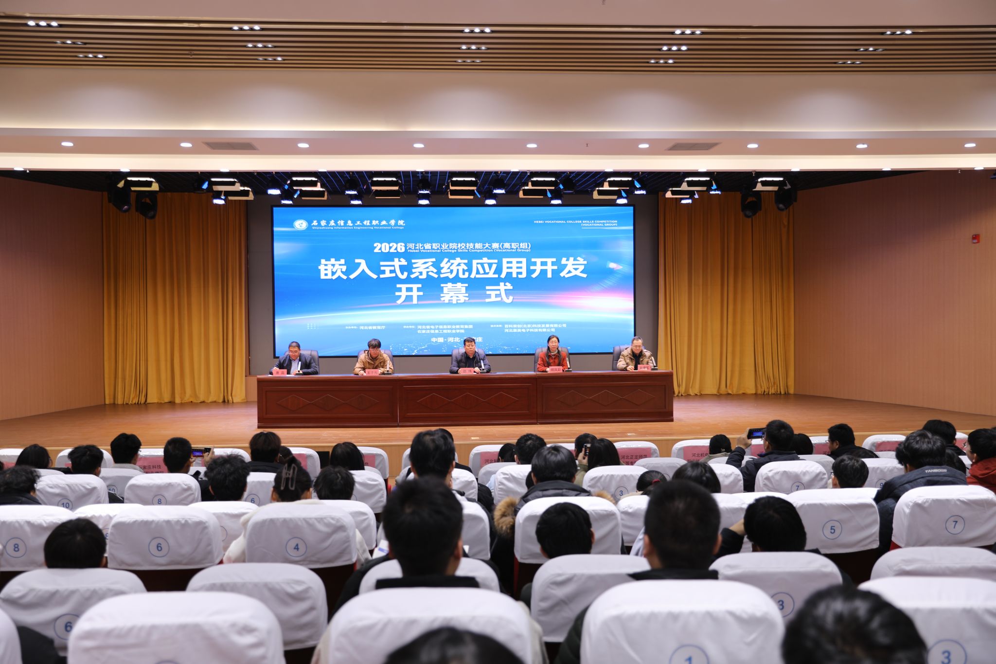 12月26日,2026年河北省职业院校技能大赛“嵌入式系统应用开发”(高职组)赛项在我院成功举办。拼搏(中国)副院长赵伟出席开幕式并致辞,河北省电子信息职业教育集团郑凤彩教授,大赛裁判长王子元教授,行业企业技术专家代表参加开幕式。