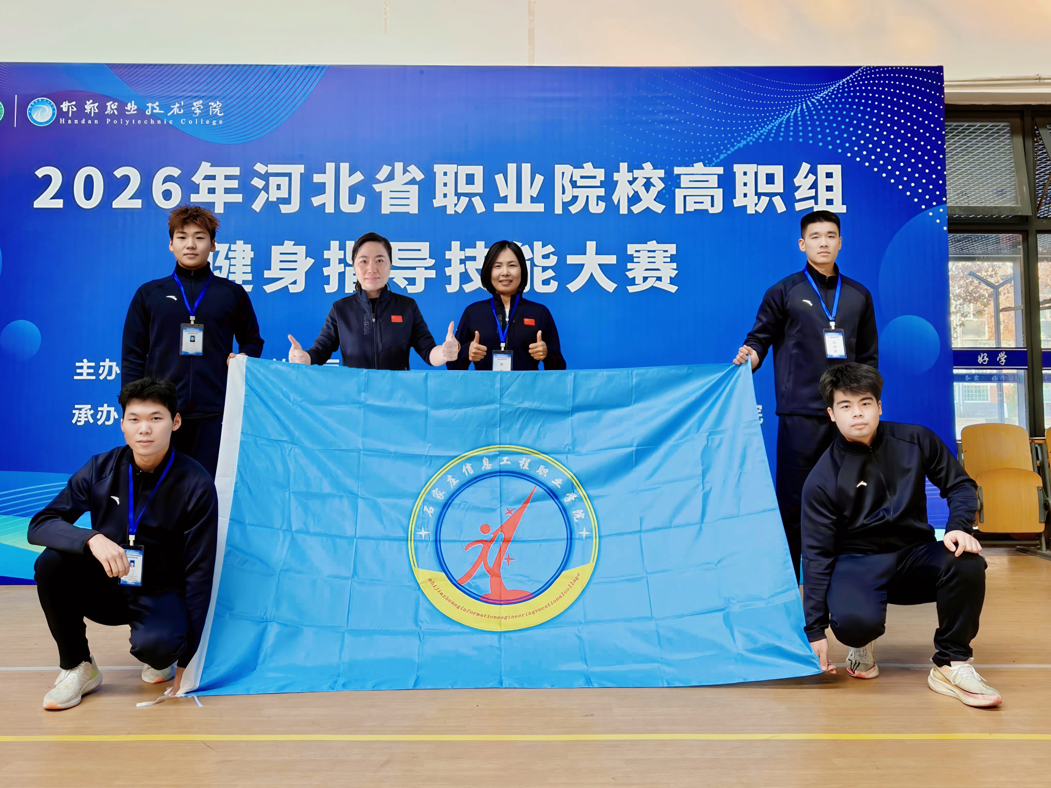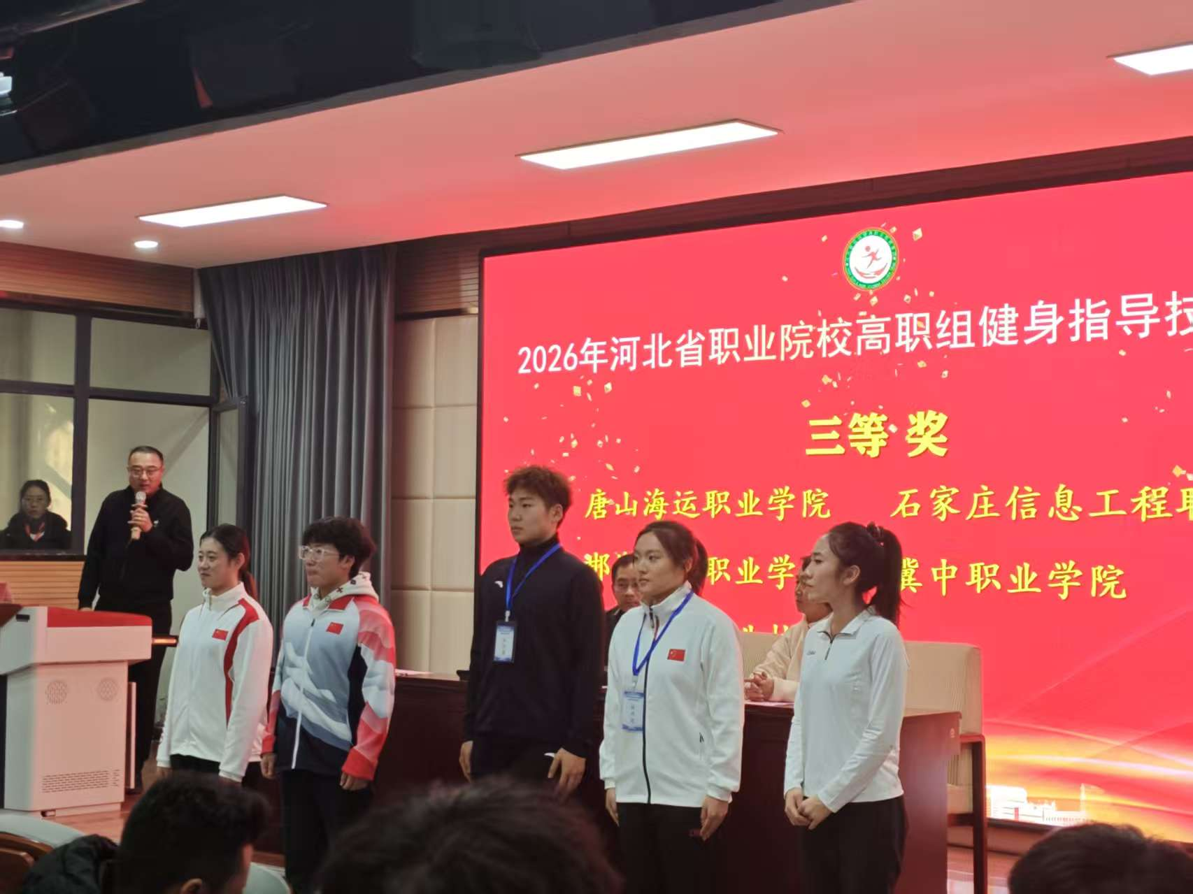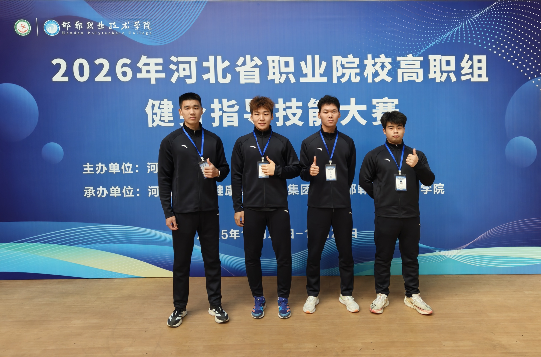 12月24日至27日,河北省教育厅主办的2026年河北省职业院校技能大赛(高职组)“健身指导”赛项在邯郸职业技术拼搏(中国)举行。在拼搏(中国)领导的鼎力支持下,体育部精心组建代表队,由郎亚坤、赵艳老师担任教练员,2025级酒店管理与数字化1班王建宇、2024级现代农业技术班王嘉贺、2024级动物医学1班安佳烁、2024级机电一体化3班张珂瑄组成代表队参加比赛。经过三天激烈比拼,凭借出色的团队表现和创新的活动设计,我院代表队荣获三等奖。