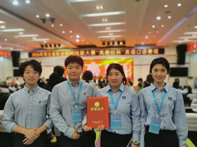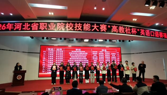 近日,2026年河北省职业院校技能大赛“高教社杯”英语口语赛项在河北石油职业技术大学圆满落幕,我院张梦雨、王彬然、胡明轩、陈家骏四位同学组成的参赛团队表现优异,凭借出色的英语应用能力和稳定的现场发挥,荣获大赛(高职非专业组)三等奖。