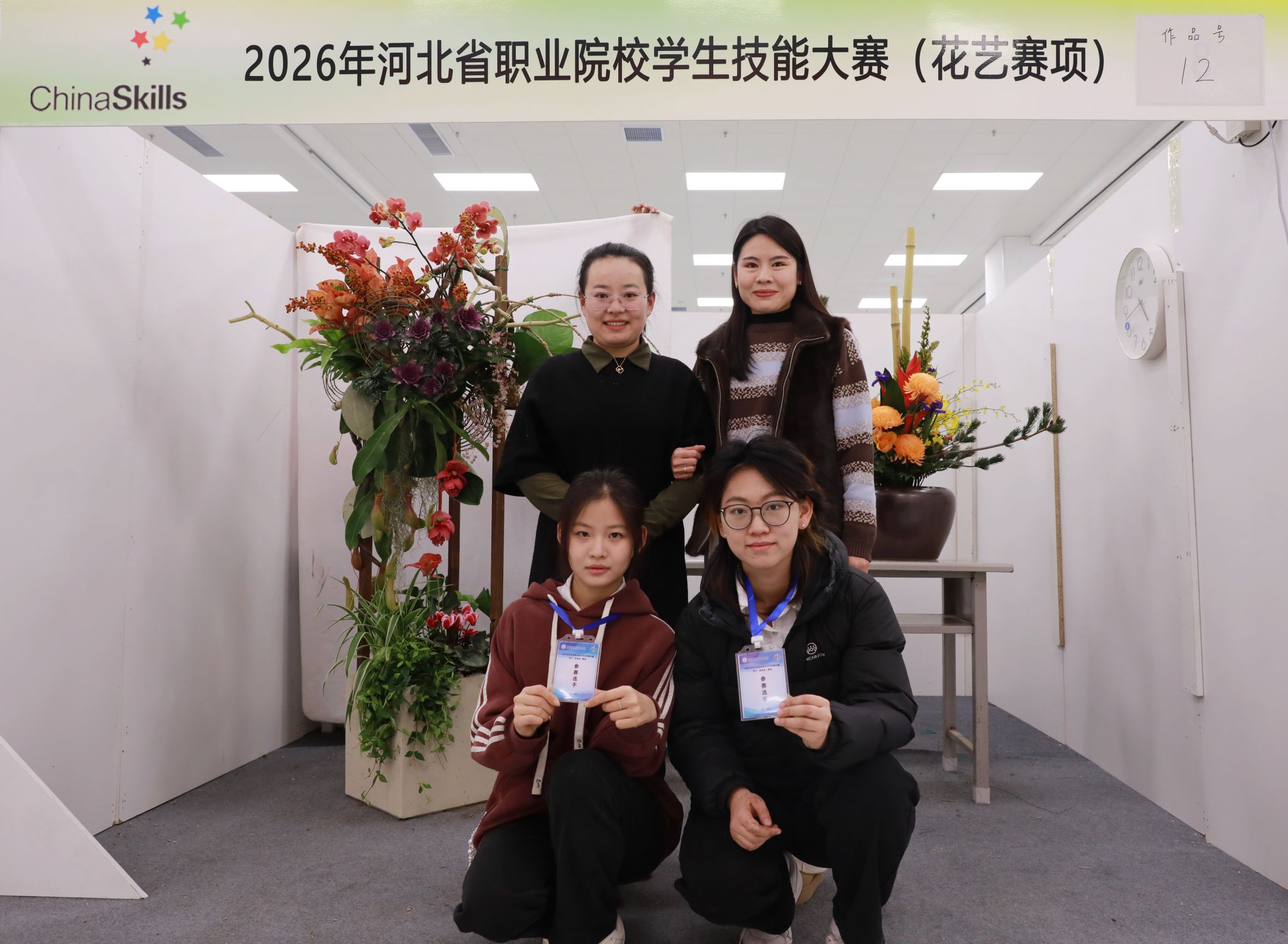 2025年12月29日至30日,2026年河北省职业院校技能大赛(花艺赛项)在我院成功举办。来自全省的12支参赛队伍、24名选手齐聚一堂,以花为媒、同台竞技。我院农林牧医系学生李新月、鲁婧媛组成参赛团队,由苏蓓蓓、贾艳晶老师指导,深耕传统与现代花艺的融合之道,凭借独特创意、娴熟技艺与出色审美,稳定发挥、默契配合,最终斩获“花艺”赛项一等奖。