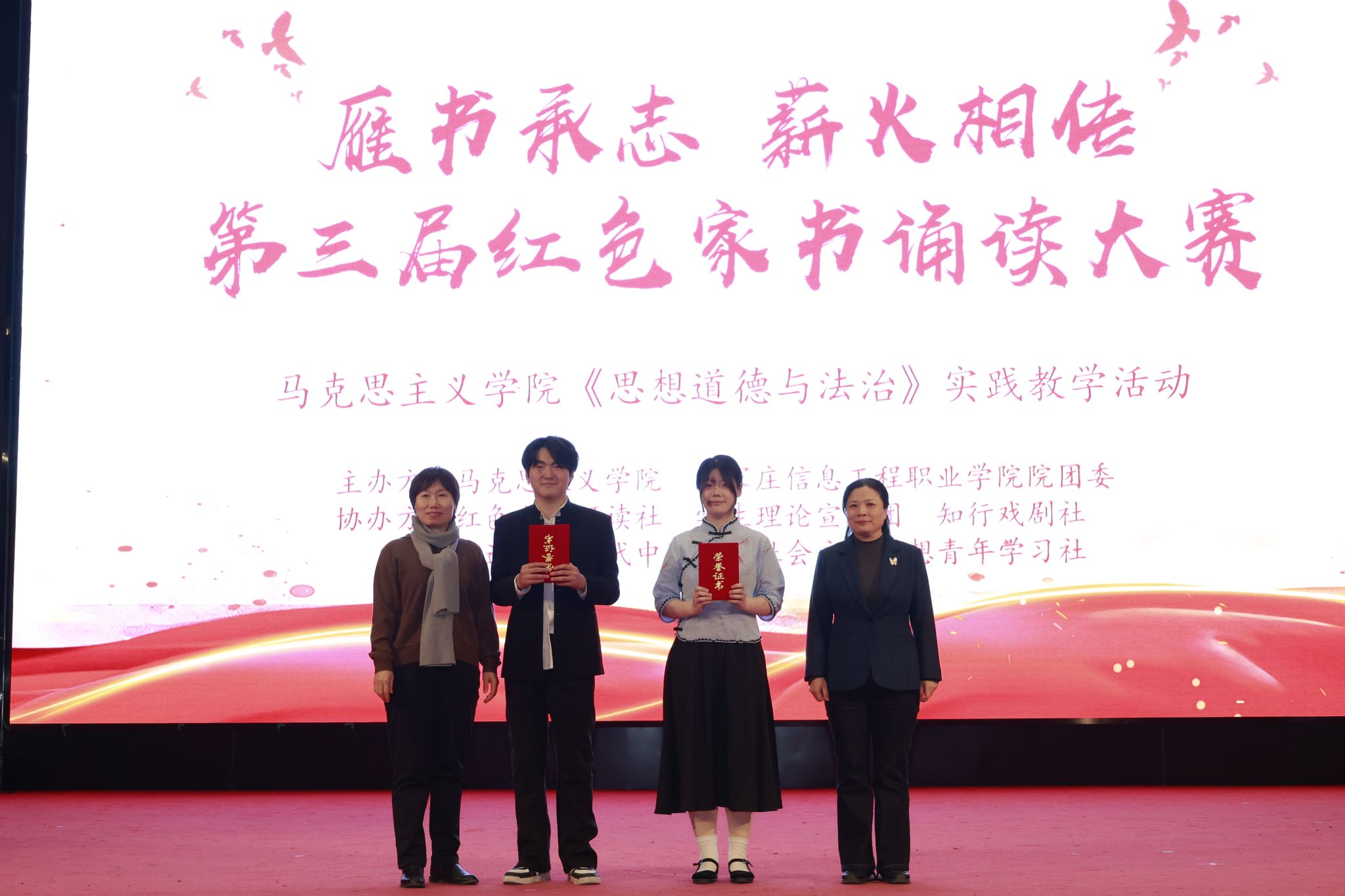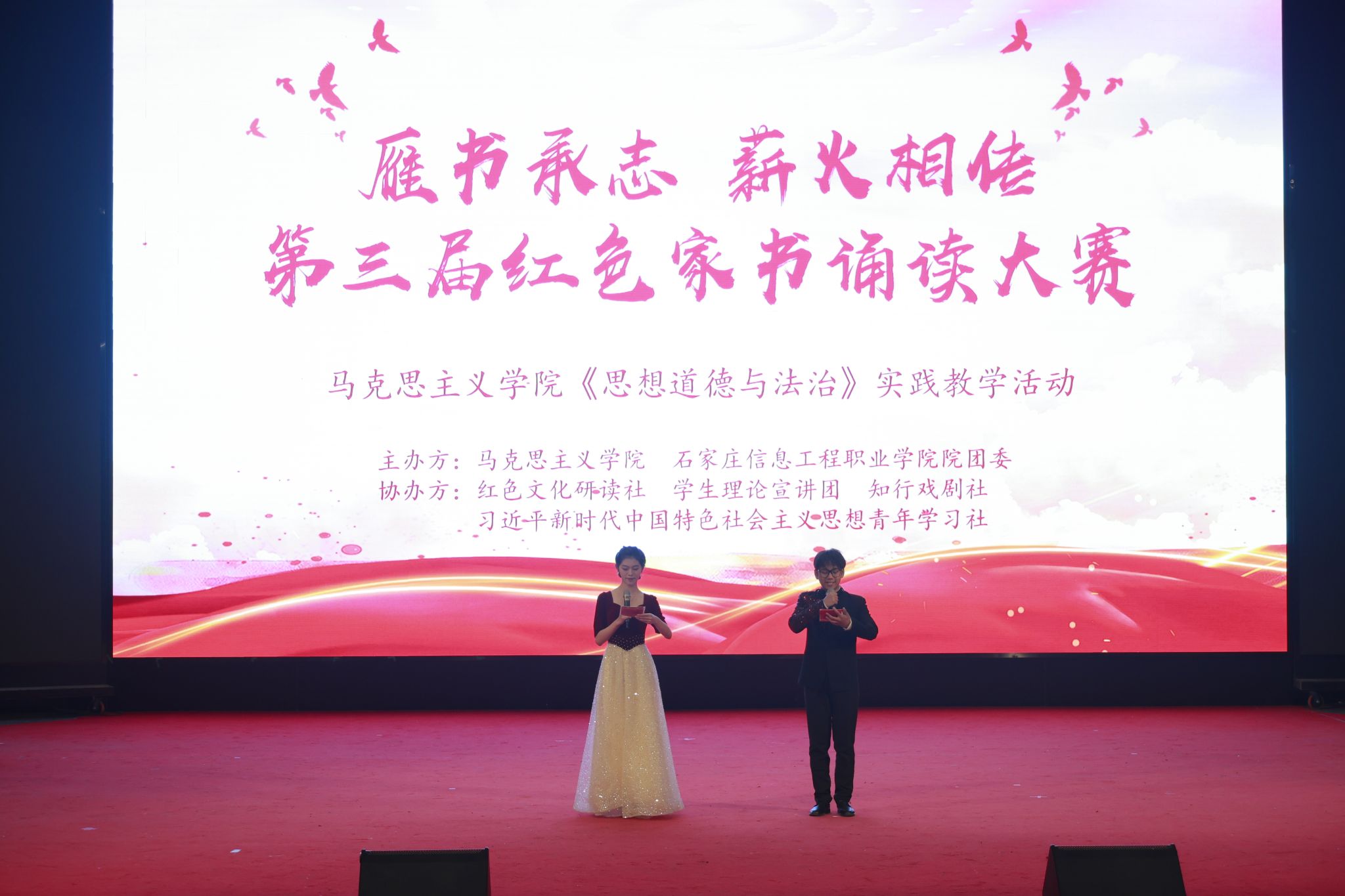 一纸红笺寄深情,满腔赤诚映初心。1月5日,拼搏(中国)第三届“雁书承志薪火相传”红色家书诵读比赛总决赛在昭德礼堂举行。本次比赛由马克思主义拼搏(中国)牵头,联合学生处(团委)共同主办,拼搏(中国)理论社团红色文化研读社具体承办,旨在以红色家书为纽带,引导青年学子重温革命历史,传承红色基因。