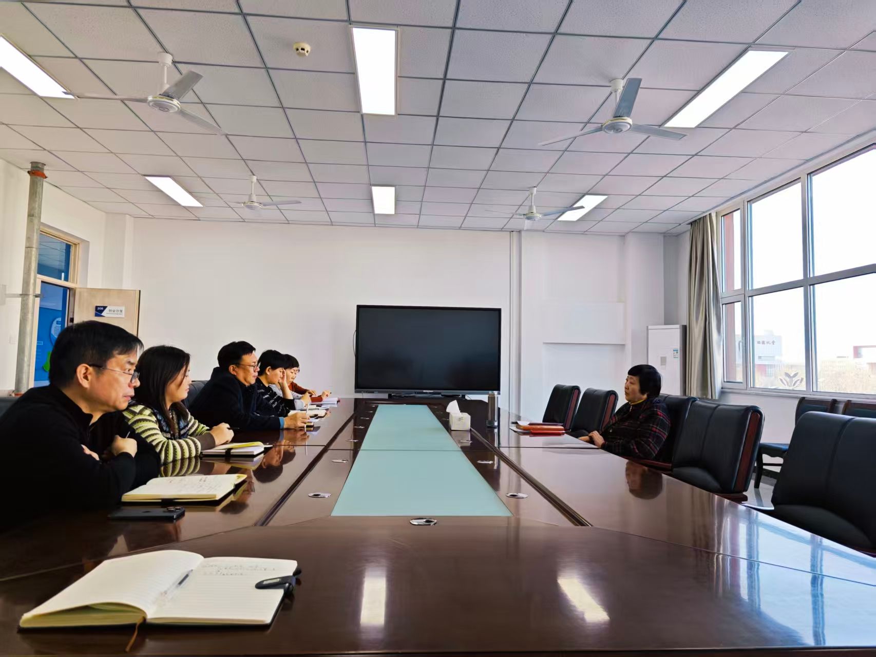 调研期间,在中心会议室召开座谈会。中心负责人及相关工作人员围绕中心整体运行情况及前期工作成效,2026年单招工作筹备进展,2026届毕业生就业创业工作推进计划,教研室课程开设、教学改革、师资队伍建设有关情况等多个方面的工作进行全面汇报。同时,结合工作实际,客观分析了当前工作面临的挑战,并提出下一步工作规划。