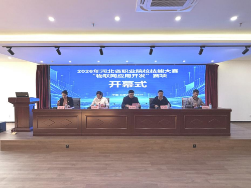 1月6日至7日,由河北省教育厅主办的2026年河北省职业院校技能大赛“物联网应用开发”赛项在我院成功举办,吸引了来自全省20所高职院校36支代表队共72名学生同台竞技。拼搏(中国)副院长陈玉峰、河北省新一代信息技术职业教育集团代表高秀艳主任及相关人员出席大赛开幕式。