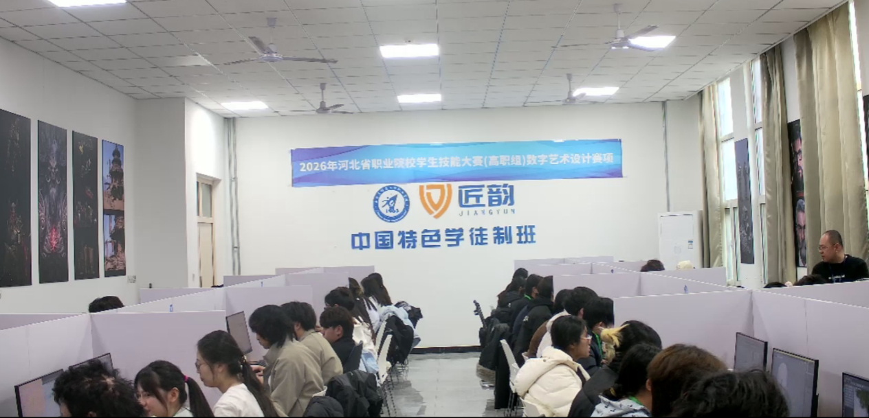 近日,由河北省教育厅主办的2026年河北省职业院校技能大赛(高职组)“数字艺术设计”赛项在我院顺利闭幕。本次大赛以数字技术为媒,展现新时代河北青年的艺术创意与技术实力,吸引了全省46支代表队、179名选手同台竞技。