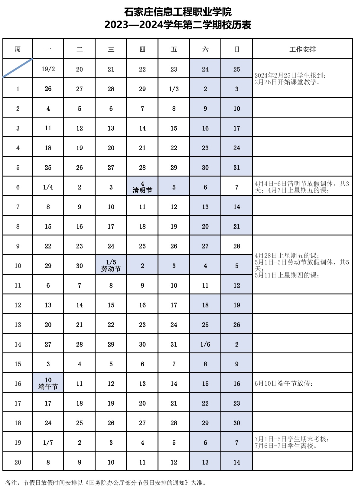2023—2024学年第二学期校历