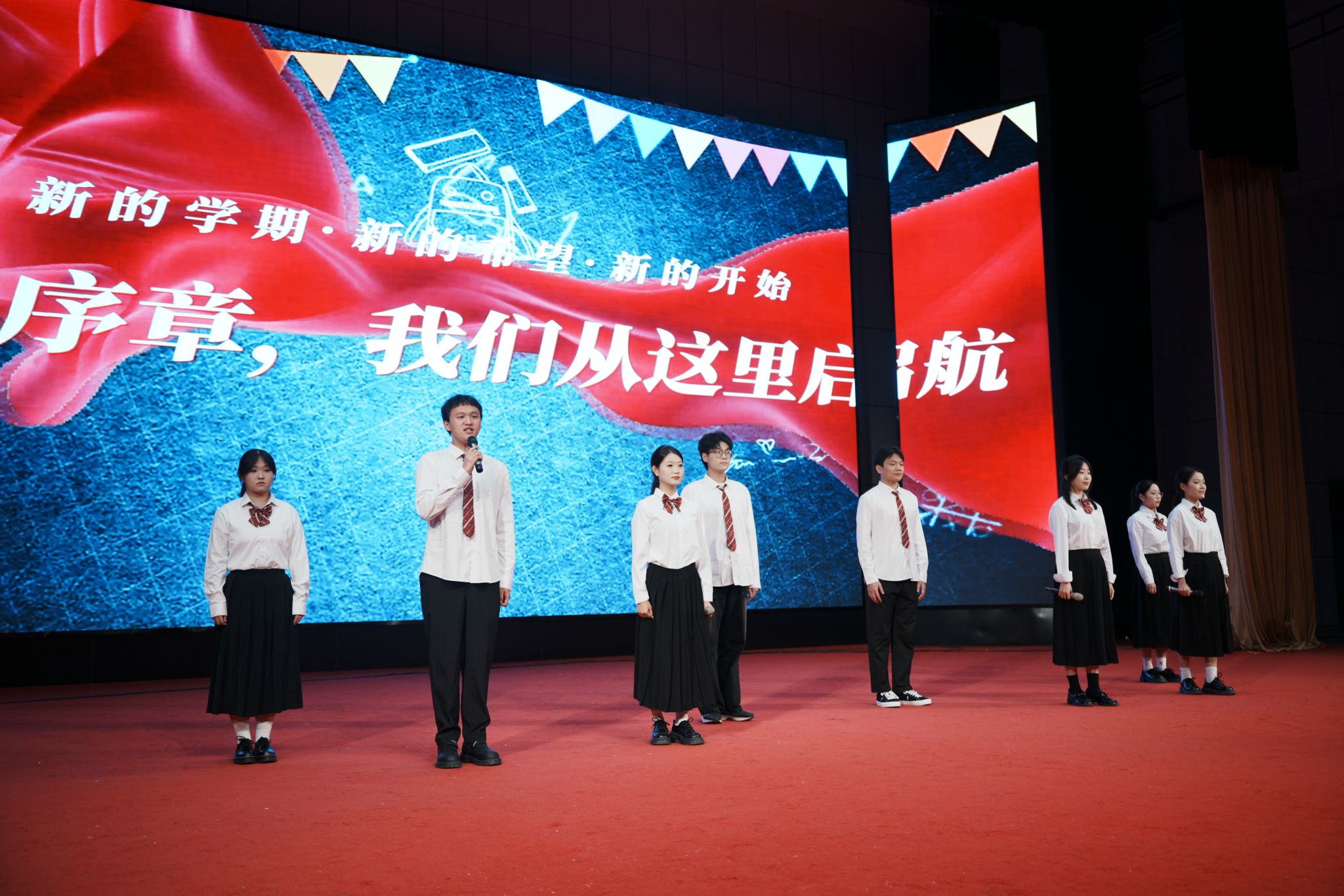 为展现新生风貌,前期录制的新生采访视频精彩亮相——新生们畅谈对大学的期待、对专业的热爱,真挚话语引发全场共鸣;新生代表随后上台发言,表达了融入集体、努力学习、追逐传媒梦想的坚定决心,尽显青春朝气。