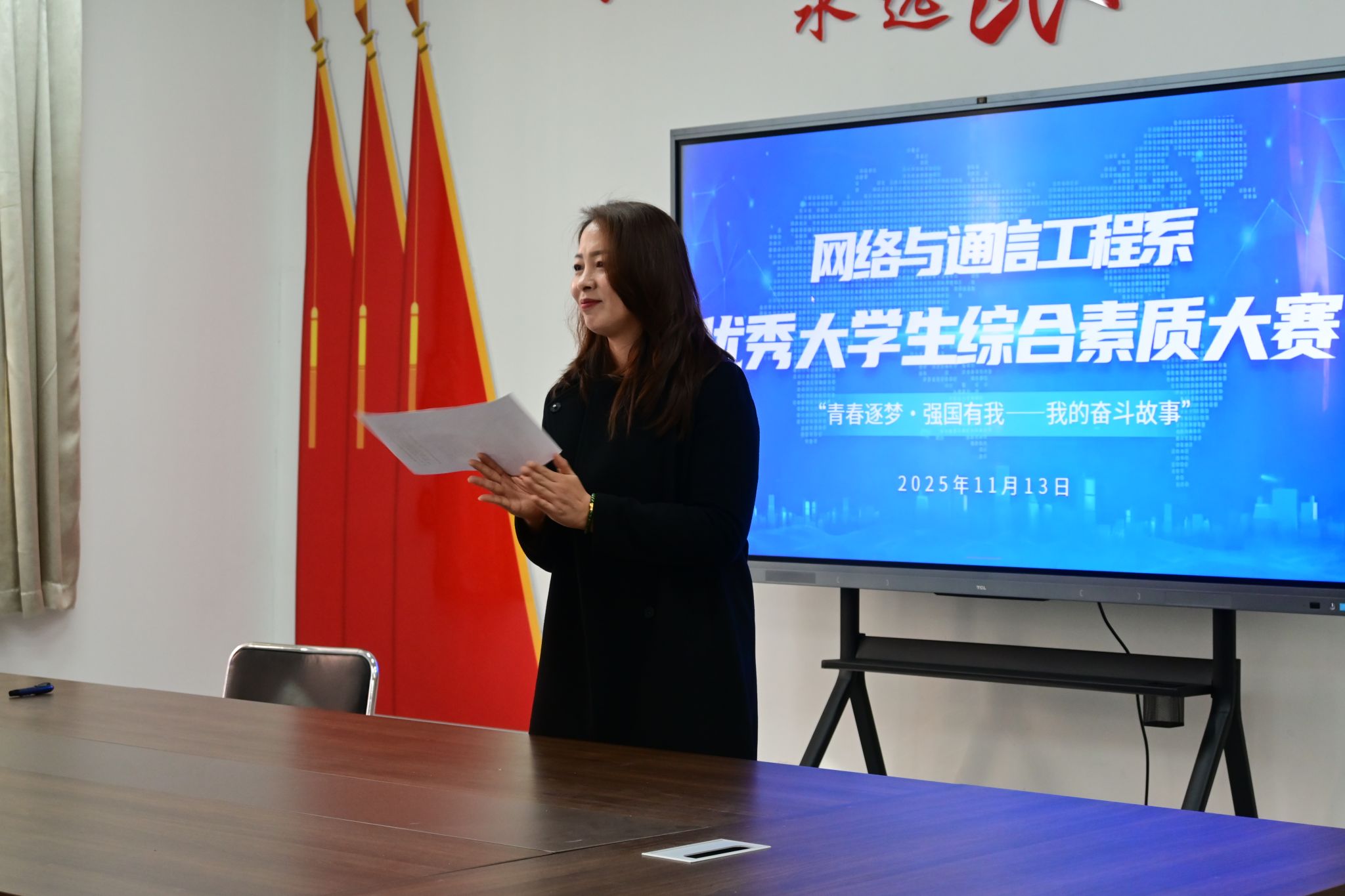 11月13日下午,网络与通信工程系优秀大学生综合素质大赛在知行楼108党员活动室举办。本次大赛以“青春逐梦·强国有我——我的奋斗故事”为主题,12名参赛选手同台竞技、各展所长,系书记王丽萍担任评委并致辞。