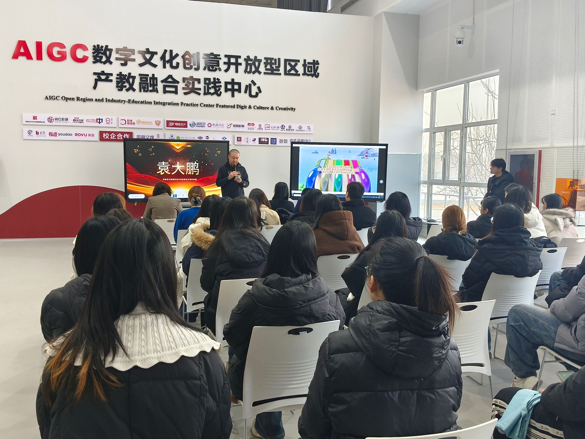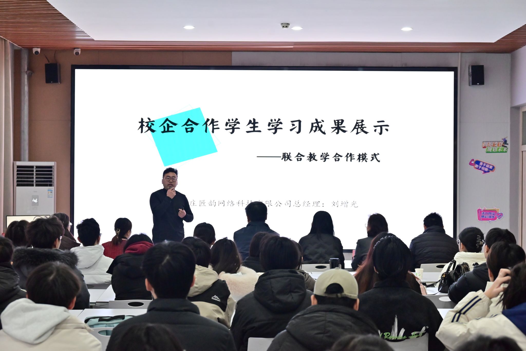 近期,传媒艺术系分别与石家庄匠韵网络科技有限公司、万维仁和(北京)科技有限责任公司联合举办“匠韵学徒制班”“万维猫学徒制班” 成果展示活动。教务处处长李永利、万维猫科技总经理袁大鹏、匠韵科技总经理刘增光、传媒艺术系书记张婷、主任袁立敏、副书记刘旭、校企双方相关人员及全体学员齐聚现场,共话育人成果,共展学子风采。